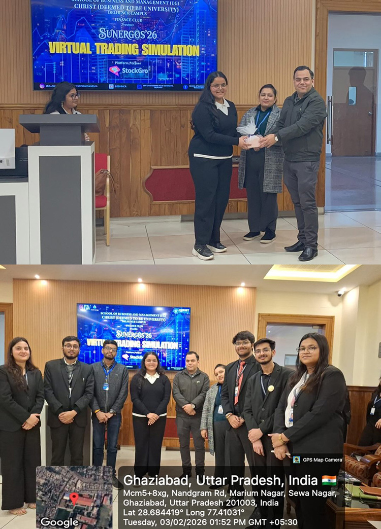 Much congratulations to Rashi Gupta, pride of Jaypee Business School, for securing 1st Position at the Virtual Trading Simulation — Sunergos’26, hosted by Christ (Deemed to be University), Delhi NCR Campus.